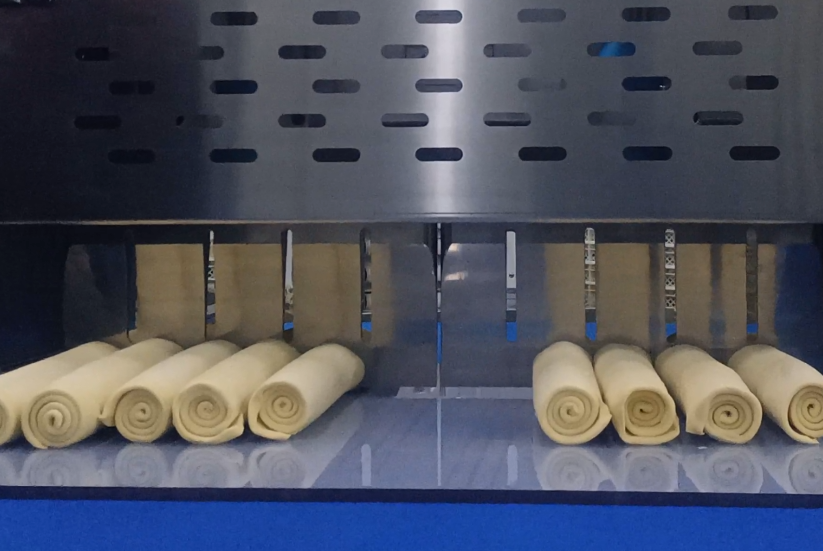 该设备配备双把超声波刀片,既可切方蛋糕,也可同时切两个圆蛋糕,效率更高